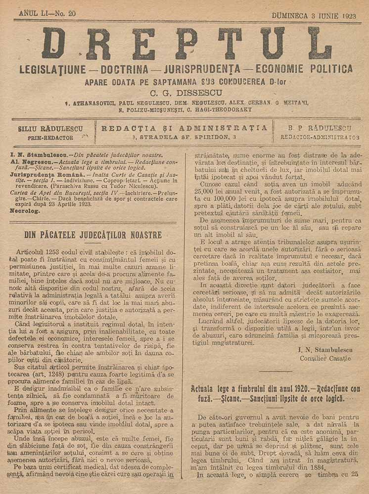 Dreptul, LI, nr. în TOM: 20, 3 iunie, 1923 Descarcă Citește × --> Anul publicației: 1923 Publicată de: Institutul de Istorie „Nicolae Iorga” București Contributori: Institutul de Istorie „Nicolae Iorga” București Tipul publicației: periodic Vezi publicația: Dreptul Domenii asociate: Drept, Științe juridice