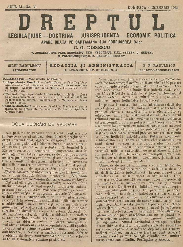 Dreptul, LI, nr. în TOM: 33, 4 noiembrie, 1923 Descarcă Citește × --> Anul publicației: 1923 Publicată de: Institutul de Istorie „Nicolae Iorga” București Contributori: Institutul de Istorie „Nicolae Iorga” București Tipul publicației: periodic Vezi publicația: Dreptul Domenii asociate: Drept, Științe juridice