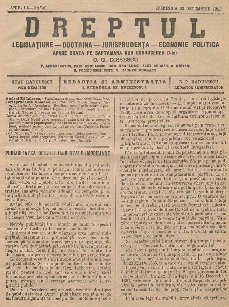 Dreptul, LI, nr. în TOM: 40, 23 decembrie, 1923 Descarcă Citește × --> Anul publicației: 1923 Publicată de: Institutul de Istorie „Nicolae Iorga” București Contributori: Institutul de Istorie „Nicolae Iorga” București Tipul publicației: periodic Vezi publicația: Dreptul Domenii asociate: Drept, Științe juridice