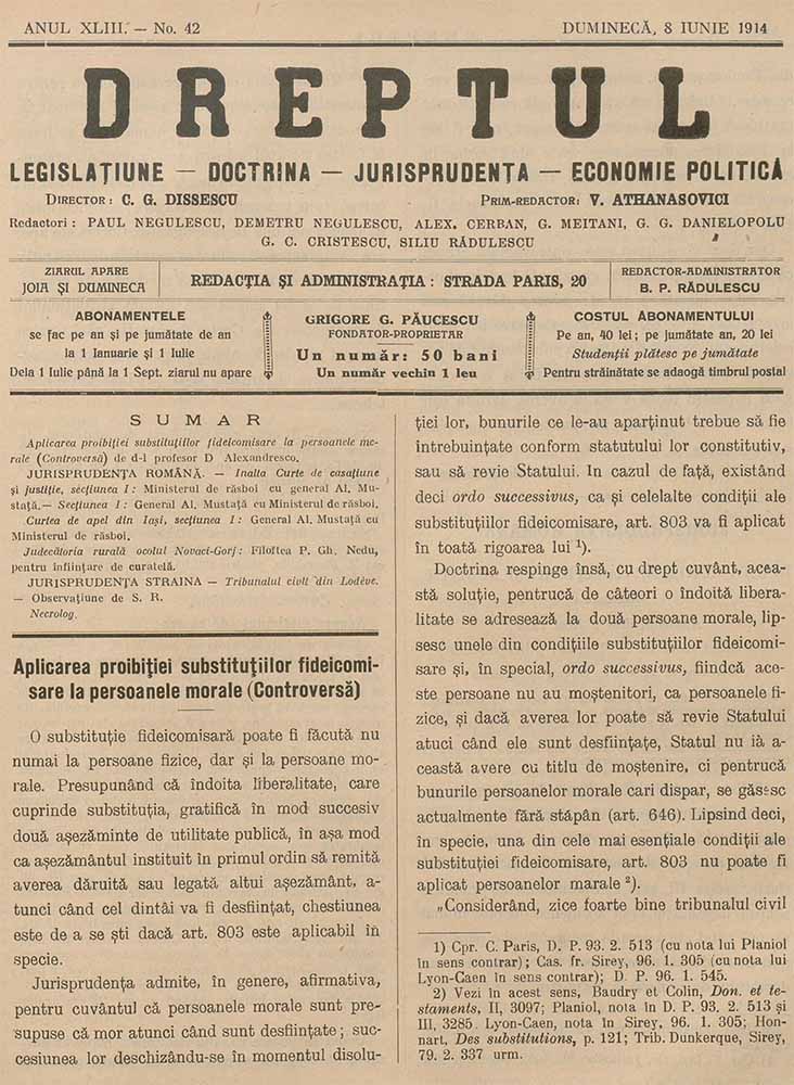 Dreptul, XLIII, nr. în TOM: 42, 8 iunie, 1914 Descarcă Citește × --> Anul publicației: 1914 Publicată de: Institutul de Istorie „Nicolae Iorga” București Contributori: Institutul de Istorie „Nicolae Iorga” București Tipul publicației: periodic Vezi publicația: Dreptul Domenii asociate: Drept, Științe juridice