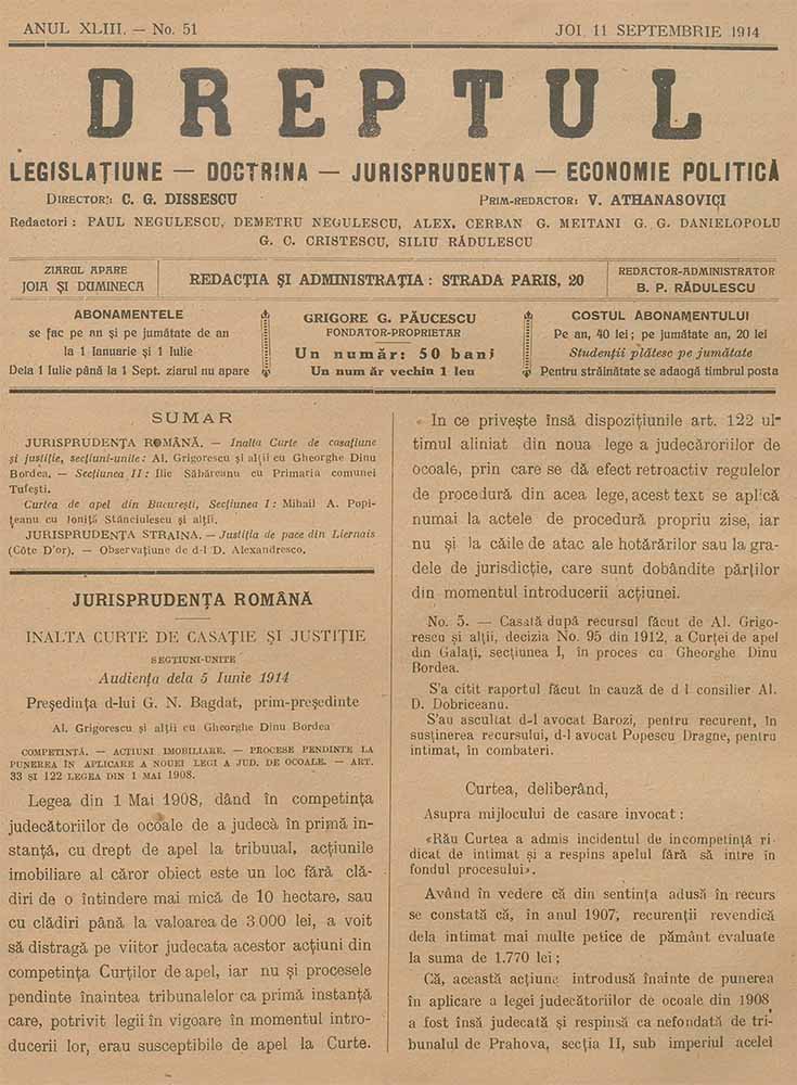 Dreptul, XLIII, nr. în TOM: 51, 11 septembrie, 1914 Descarcă Citește × --> Anul publicației: 1914 Publicată de: Institutul de Istorie „Nicolae Iorga” București Contributori: Institutul de Istorie „Nicolae Iorga” București Tipul publicației: periodic Vezi publicația: Dreptul Domenii asociate: Drept, Științe juridice