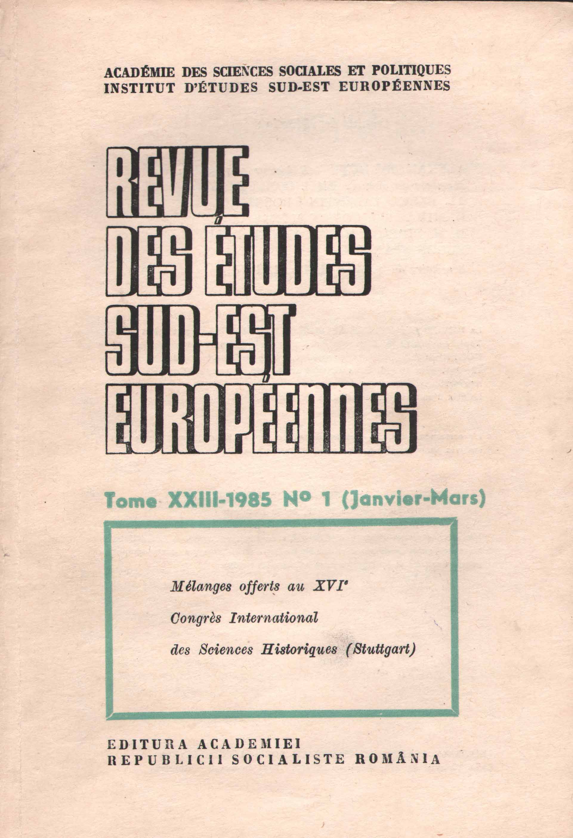 Revue des Etudes Sud-Est Europeennes: RESEE, XXIII, nr. în TOM: 1, 1985