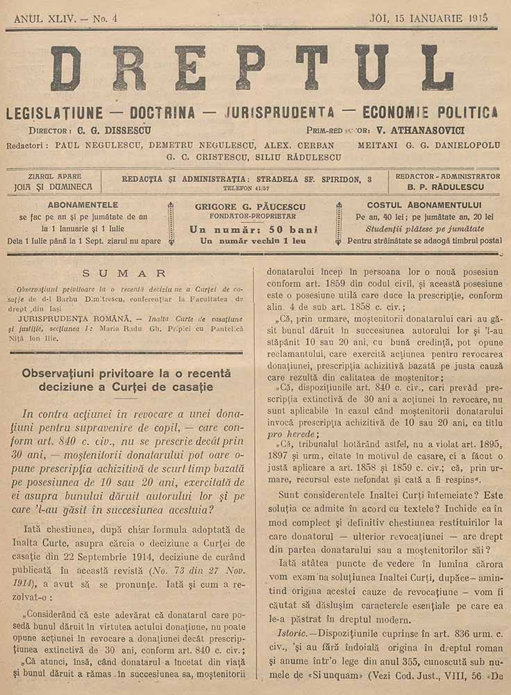 Dreptul, XLIV, nr. în TOM: 4, 15 ianuarie, 1915 Descarcă Citește × --> Anul publicației: 1915 Publicată de: Institutul de Istorie „Nicolae Iorga” București Contributori: Institutul de Istorie „Nicolae Iorga” București Tipul publicației: periodic Vezi publicația: Dreptul Domenii asociate: Drept, Științe juridice