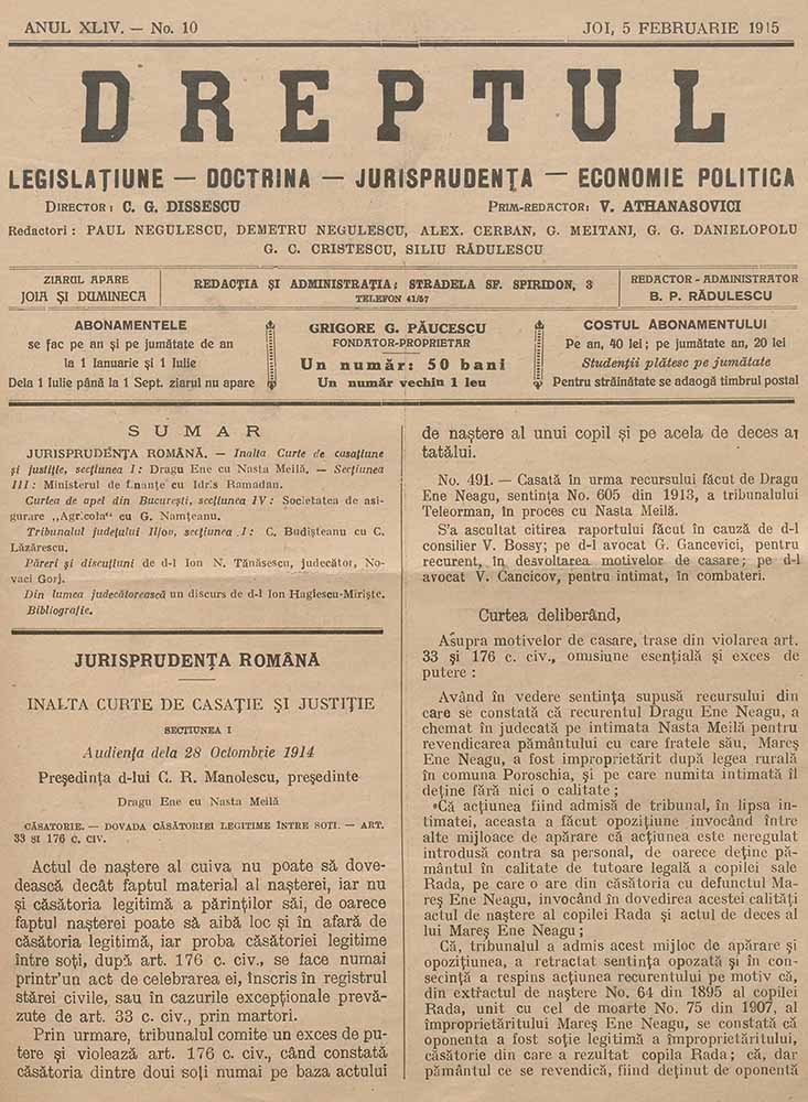 Dreptul, XLIV, nr. în TOM: 10, 5 februarie, 1915 Descarcă Citește × --> Anul publicației: 1915 Publicată de: Institutul de Istorie „Nicolae Iorga” București Contributori: Institutul de Istorie „Nicolae Iorga” București Tipul publicației: periodic Vezi publicația: Dreptul Domenii asociate: Drept, Științe juridice