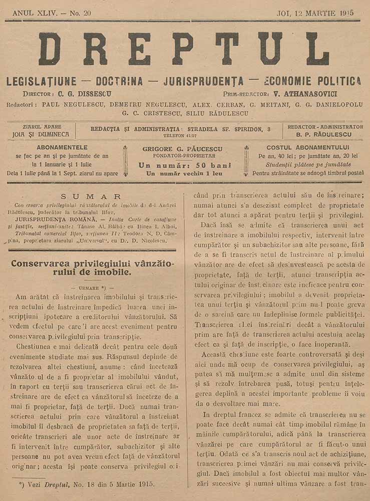 Dreptul, XLIV, nr. în TOM: 20, 12 martie, 1915 Descarcă Citește × --> Anul publicației: 1915 Publicată de: Institutul de Istorie „Nicolae Iorga” București Contributori: Institutul de Istorie „Nicolae Iorga” București Tipul publicației: periodic Vezi publicația: Dreptul Domenii asociate: Drept, Științe juridice