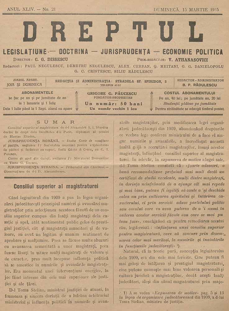 Dreptul, XLIV, nr. în TOM: 21, 15 martie, 1915