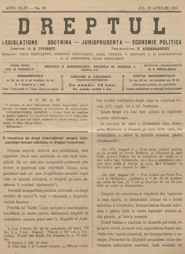 Dreptul, XLIV, nr. în TOM: 30, 23 aprilie, 1915 Descarcă Citește × --> Anul publicației: 1915 Publicată de: Institutul de Istorie „Nicolae Iorga” București Contributori: Institutul de Istorie „Nicolae Iorga” București Tipul publicației: periodic Vezi publicația: Dreptul Domenii asociate: Drept, Științe juridice
