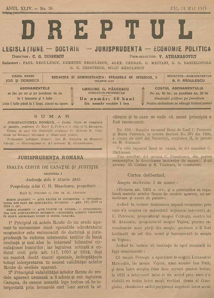 Dreptul, XLIV, nr. în TOM: 36, 11 mai, 1915 Descarcă Citește × --> Anul publicației: 1915 Publicată de: Institutul de Istorie „Nicolae Iorga” București Contributori: Institutul de Istorie „Nicolae Iorga” București Tipul publicației: periodic Vezi publicația: Dreptul Domenii asociate: Drept, Științe juridice