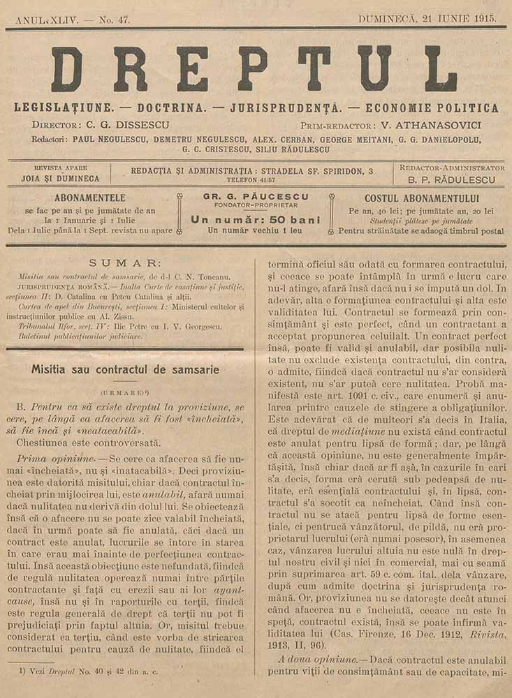 Dreptul, XLIV, nr. în TOM: 47, 21 iunie, 1915 Descarcă Citește × --> Anul publicației: 1915 Publicată de: Institutul de Istorie „Nicolae Iorga” București Contributori: Institutul de Istorie „Nicolae Iorga” București Tipul publicației: periodic Vezi publicația: Dreptul Domenii asociate: Drept, Științe juridice