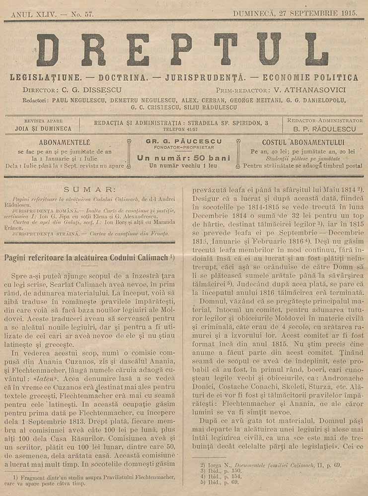 Dreptul, XLIV, nr. în TOM: 57, 27 septembrie, 1915 Descarcă Citește × --> Anul publicației: 1915 Publicată de: Institutul de Istorie „Nicolae Iorga” București Contributori: Institutul de Istorie „Nicolae Iorga” București Tipul publicației: periodic Vezi publicația: Dreptul Domenii asociate: Drept, Științe juridice