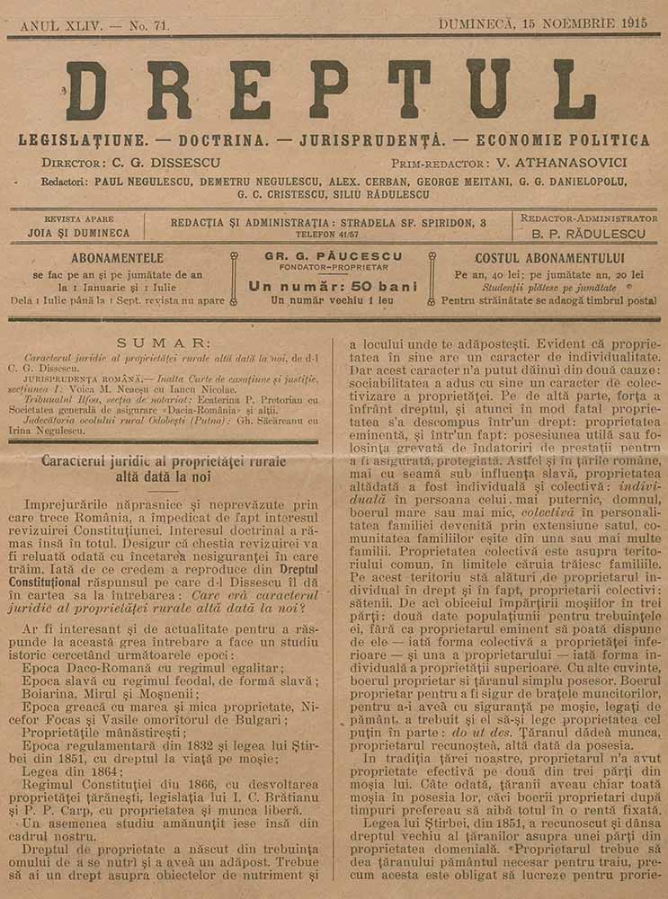 Dreptul, XLIV, nr. în TOM: 71, 15 noiembrie, 1915 Descarcă Citește × --> Anul publicației: 1915 Publicată de: Institutul de Istorie „Nicolae Iorga” București Contributori: Institutul de Istorie „Nicolae Iorga” București Tipul publicației: periodic Vezi publicația: Dreptul Domenii asociate: Drept, Științe juridice