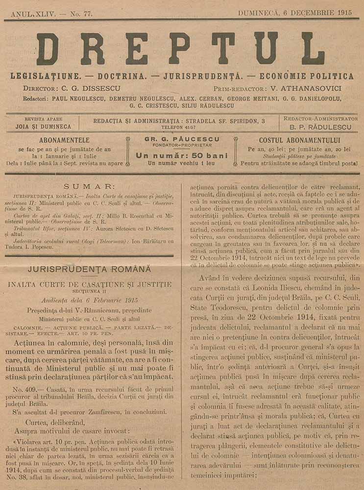 Dreptul, XLIV, nr. în TOM: 77, 6 decembrie, 1915 Descarcă Citește × --> Anul publicației: 1915 Publicată de: Institutul de Istorie „Nicolae Iorga” București Contributori: Institutul de Istorie „Nicolae Iorga” București Tipul publicației: periodic Vezi publicația: Dreptul Domenii asociate: Drept, Științe juridice