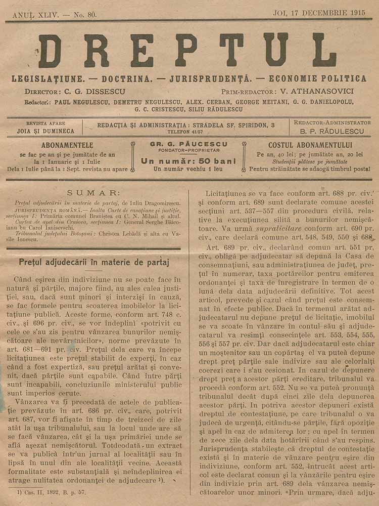 Dreptul, XLIV, nr. în TOM: 80, 17 decembrie, 1915 Descarcă Citește × --> Anul publicației: 1915 Publicată de: Institutul de Istorie „Nicolae Iorga” București Contributori: Institutul de Istorie „Nicolae Iorga” București Tipul publicației: periodic Vezi publicația: Dreptul Domenii asociate: Drept, Științe juridice