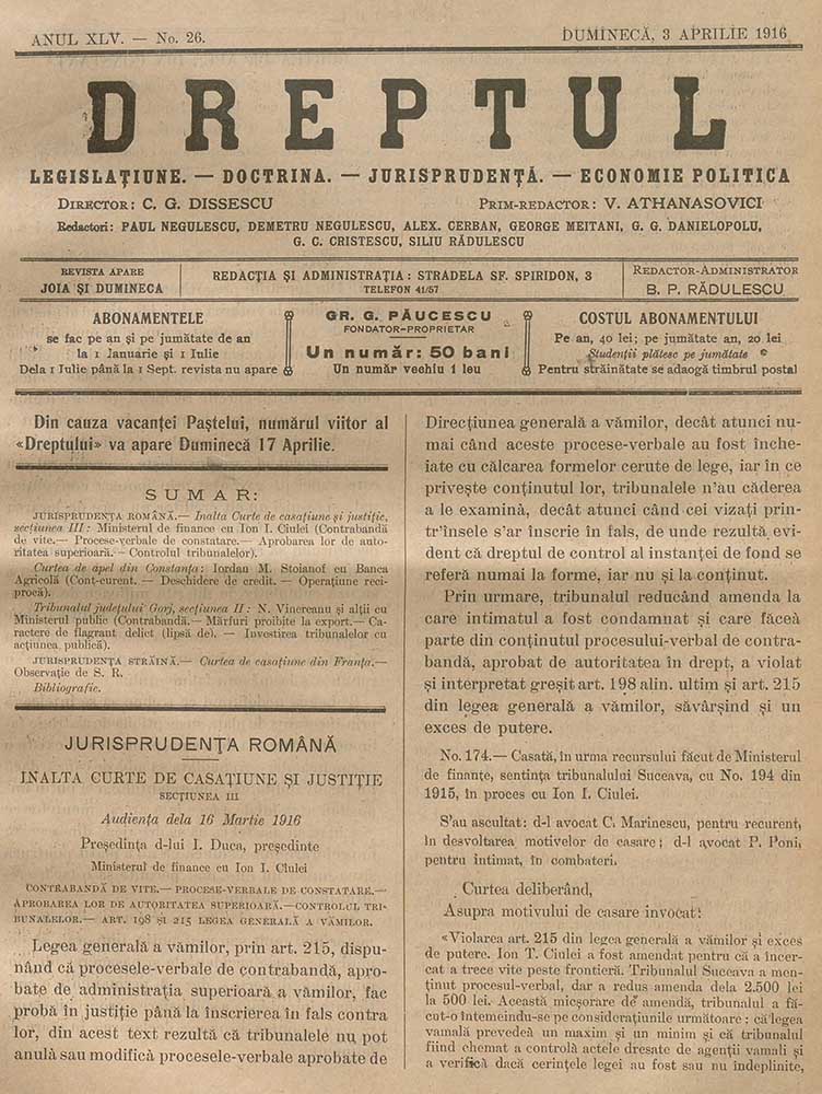 Dreptul, nr. în TOM: 26, 3 aprilie, 1916