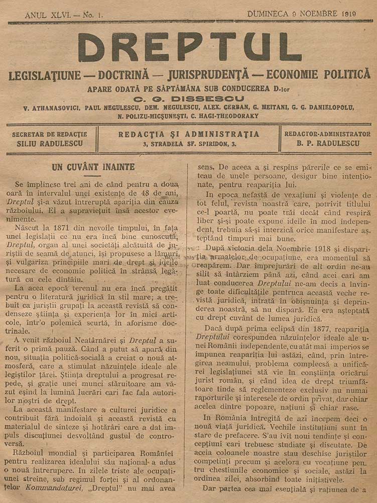Dreptul, nr. în TOM: 1, 9 noiembrie, 1919