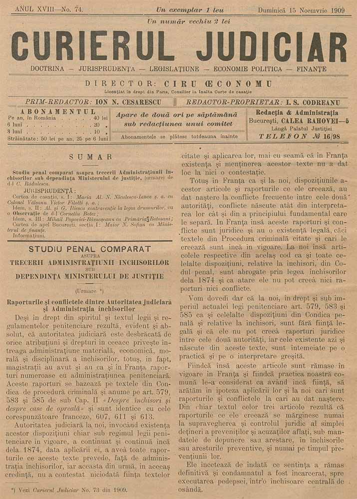 Curierul Judiciar, nr. în TOM: 74, 15 noiembrie, 1909