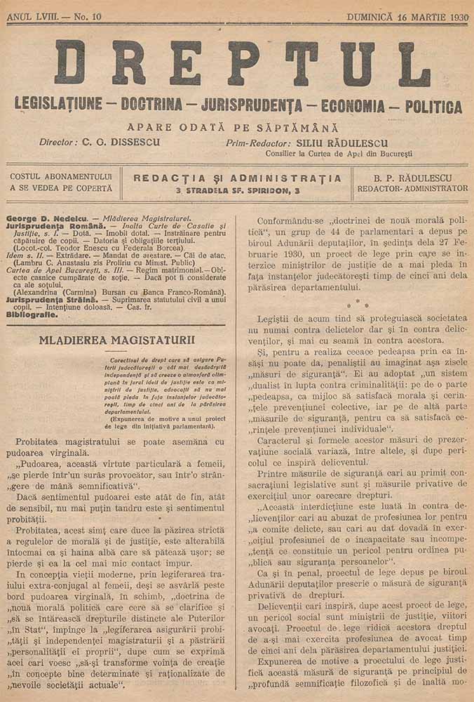 Dreptul, LVIII, nr. în TOM: 10, 16 martie, 1930 Descarcă Citește × --> Anul publicației: 1930 Publicată de: Institutul de Istorie „Nicolae Iorga” București Contributori: Institutul de Istorie „Nicolae Iorga” București Tipul publicației: periodic Vezi publicația: Dreptul Domenii asociate: Drept, Științe juridice