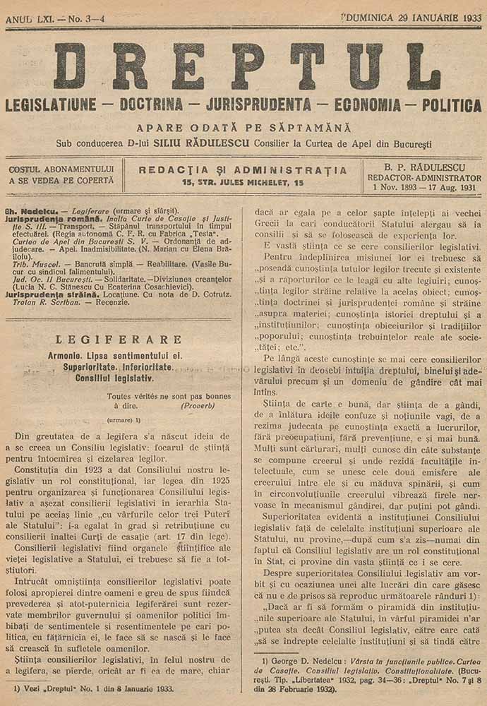 Dreptul, LXI, nr. în TOM: 3-4, 29 ianuarie, 1933 Descarcă Citește × --> Anul publicației: 1933 Publicată de: Institutul de Istorie „Nicolae Iorga” București Contributori: Institutul de Istorie „Nicolae Iorga” București Tipul publicației: periodic Vezi publicația: Dreptul Domenii asociate: Drept, Științe juridice