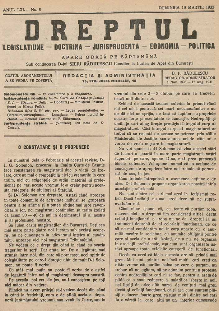 Dreptul, LXI, nr. în TOM: 8, 19 martie, 1933 Descarcă Citește × --> Anul publicației: 1933 Publicată de: Institutul de Istorie „Nicolae Iorga” București Contributori: Institutul de Istorie „Nicolae Iorga” București Tipul publicației: periodic Vezi publicația: Dreptul Domenii asociate: Drept, Științe juridice