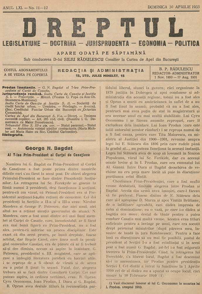 Dreptul, LXI, nr. în TOM: 11-12, 30 aprilie, 1933 Descarcă Citește × --> Anul publicației: 1933 Publicată de: Institutul de Istorie „Nicolae Iorga” București Contributori: Institutul de Istorie „Nicolae Iorga” București Tipul publicației: periodic Vezi publicația: Dreptul Domenii asociate: Drept, Științe juridice