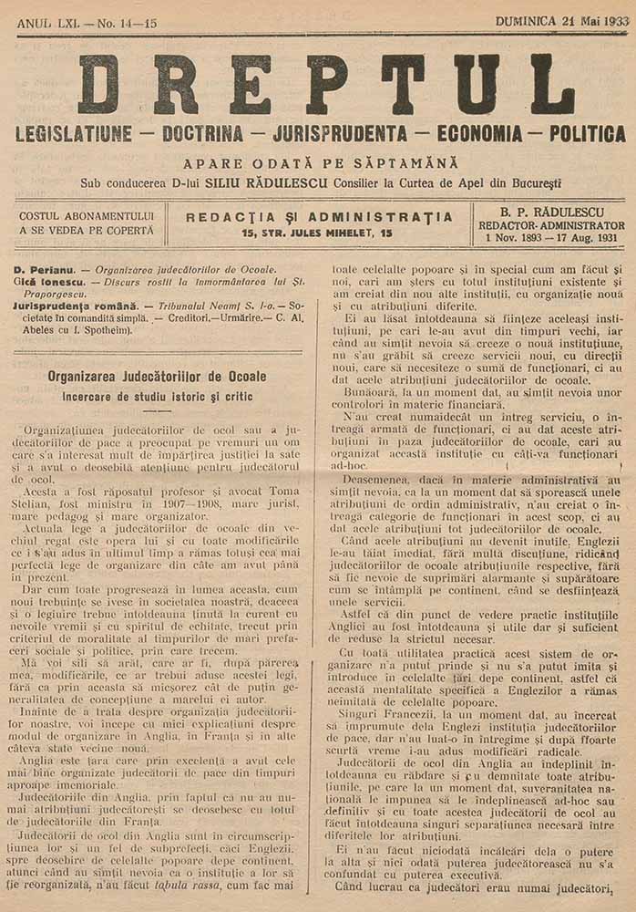 Dreptul, LXI, nr. în TOM: 14-15, 21 mai, 1933 Descarcă Citește × --> Anul publicației: 1933 Publicată de: Institutul de Istorie „Nicolae Iorga” București Contributori: Institutul de Istorie „Nicolae Iorga” București Tipul publicației: periodic Vezi publicația: Dreptul Domenii asociate: Drept, Științe juridice