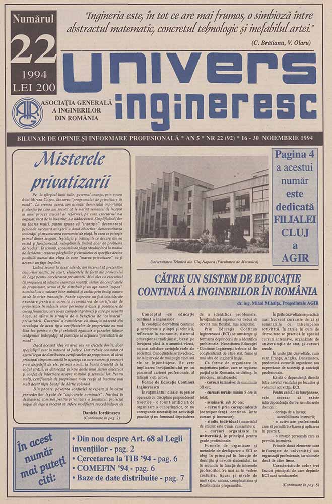 Univers ingineresc, V, nr. în TOM: 22, 1994