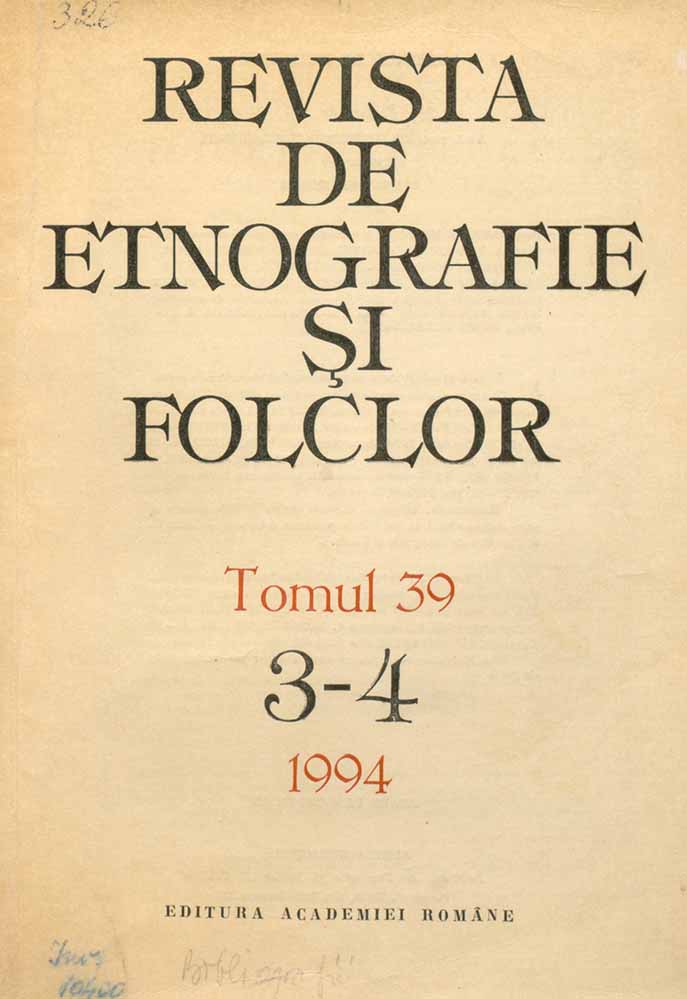 Revista de Folclor: REF, XXXIX, nr. în TOM: 3-4, 1994