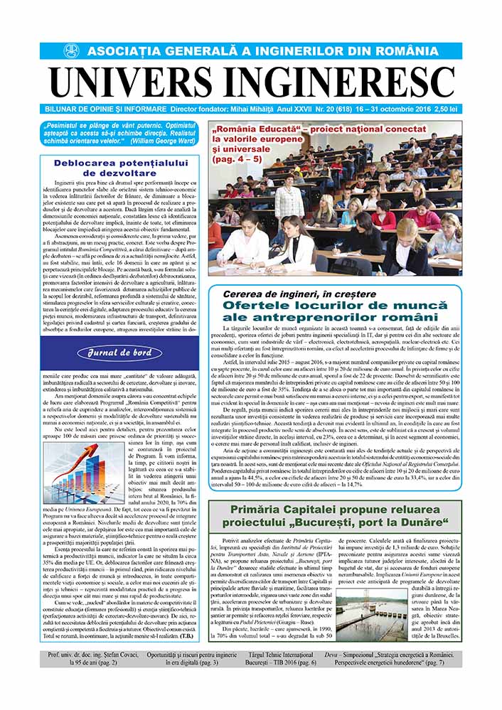 Univers ingineresc, XXVII, nr. în TOM: 20, 2016