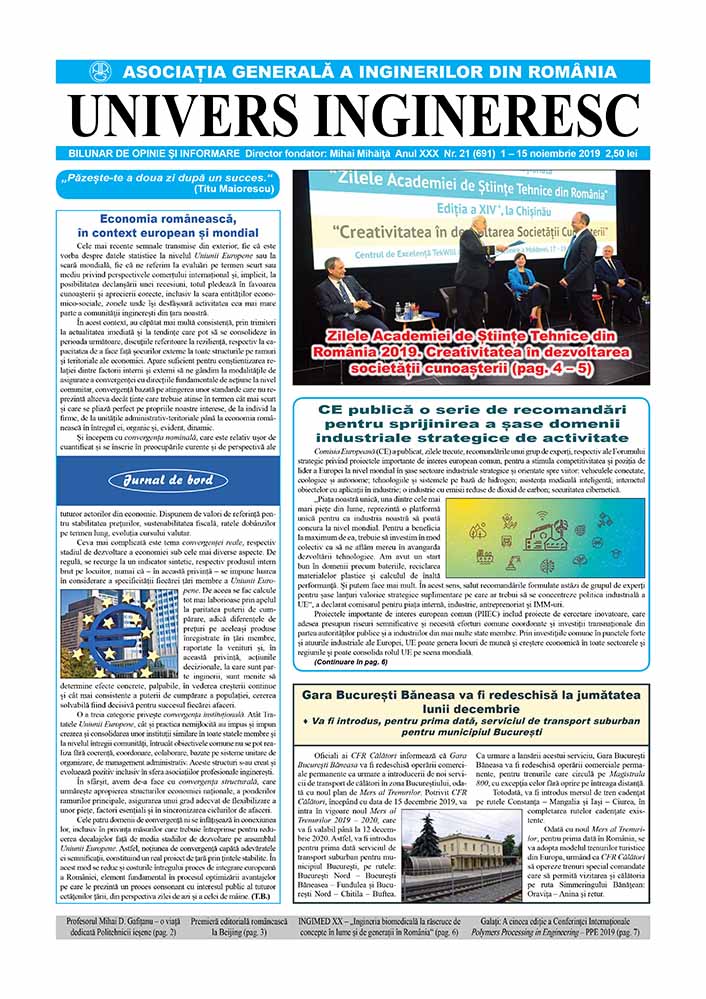 Univers ingineresc, XXX, nr. în TOM: 21, 2019