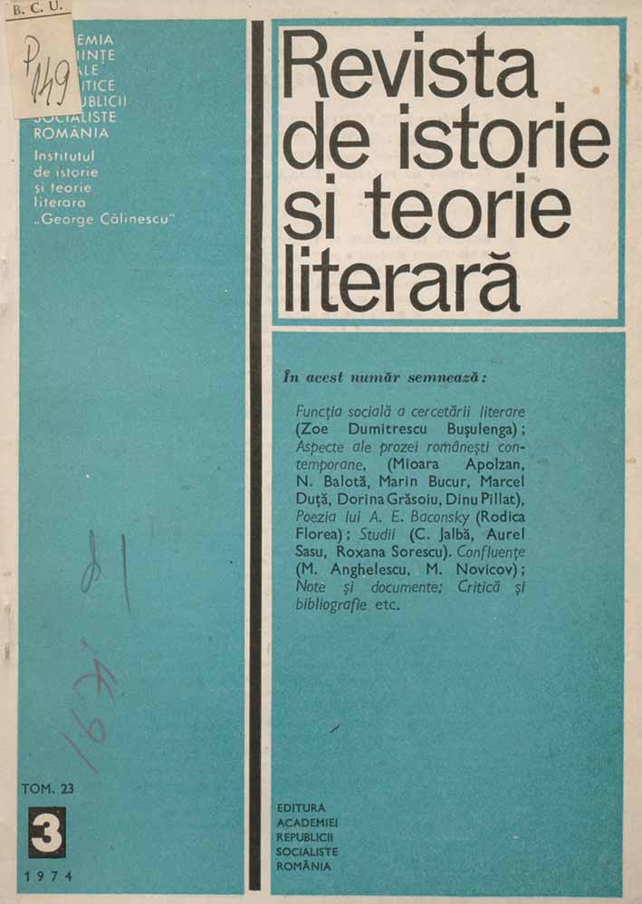 Revista de Istorie și Teorie Literară, 23, nr. în TOM: 3, 1974