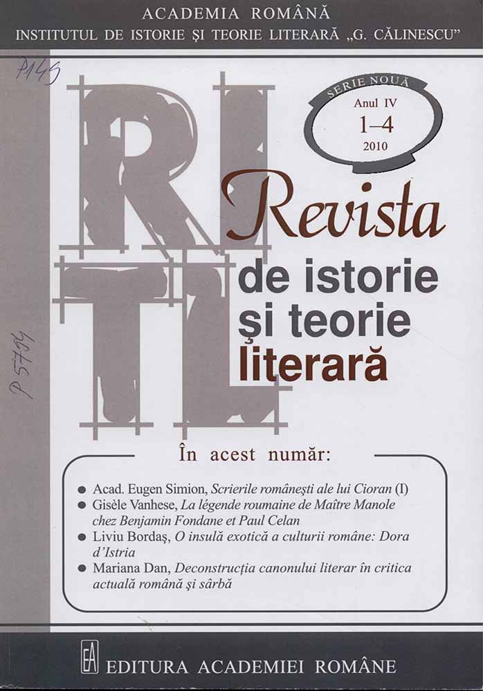 Revista de Istorie și Teorie Literară, IV, nr. în TOM: 1-4, 2010, Serie Nouă