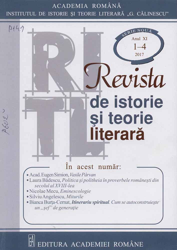 Revista de Istorie și Teorie Literară, XI, nr. în TOM: 1-4, 2017, Serie Nouă