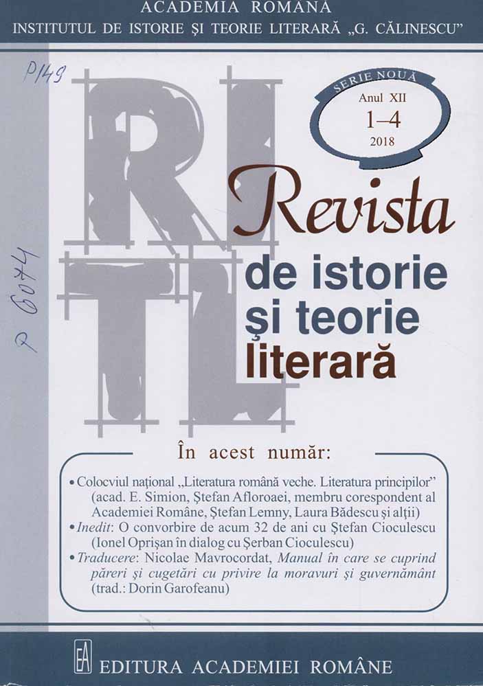 Revista de Istorie și Teorie Literară, XII, nr. în TOM: 1-4, 2018, Serie Nouă