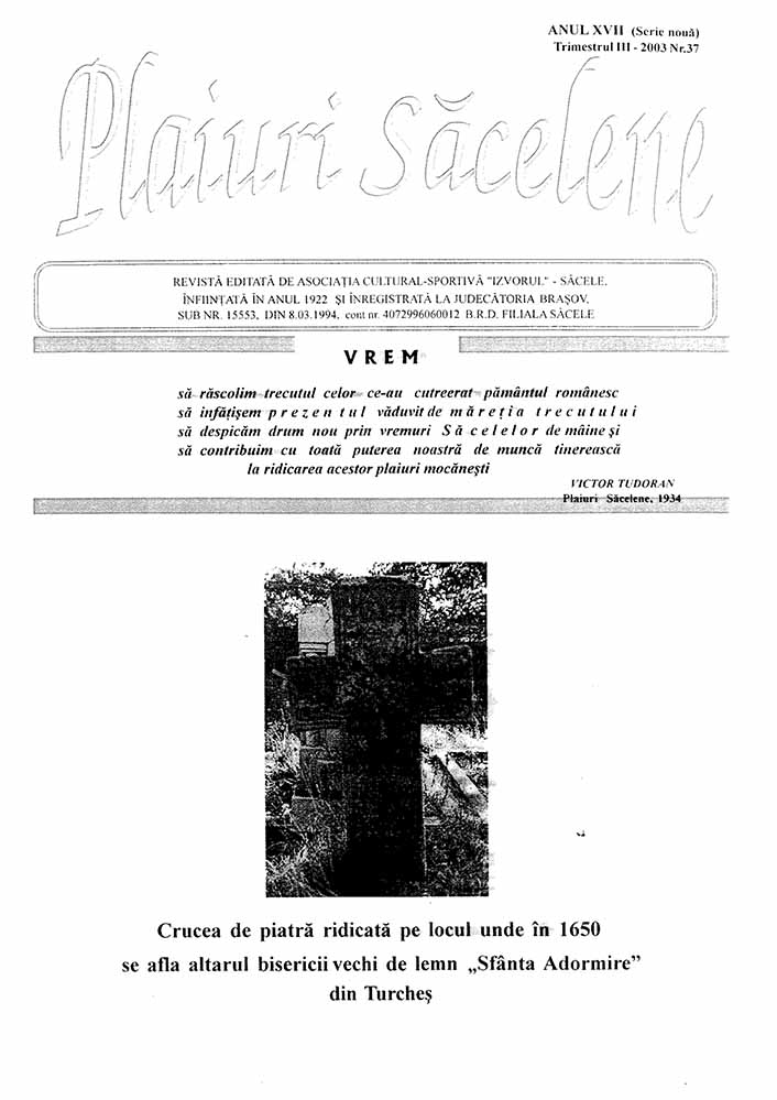 Plaiuri Săcelene, XVII, nr. în TOM: 37, 2003, Serie Nouă
