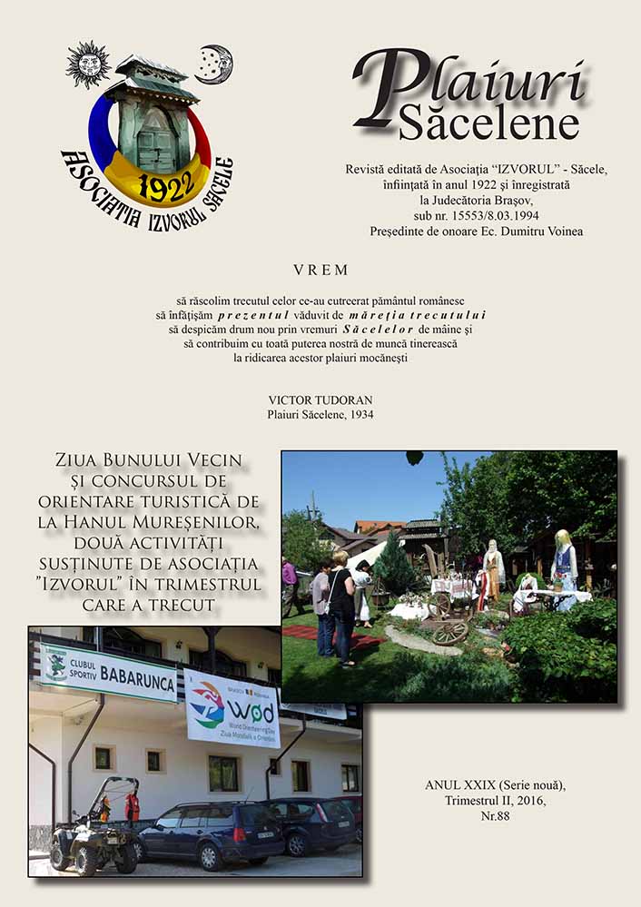 Plaiuri Săcelene, XXIX, nr. în TOM: 88, 2016, Serie Nouă