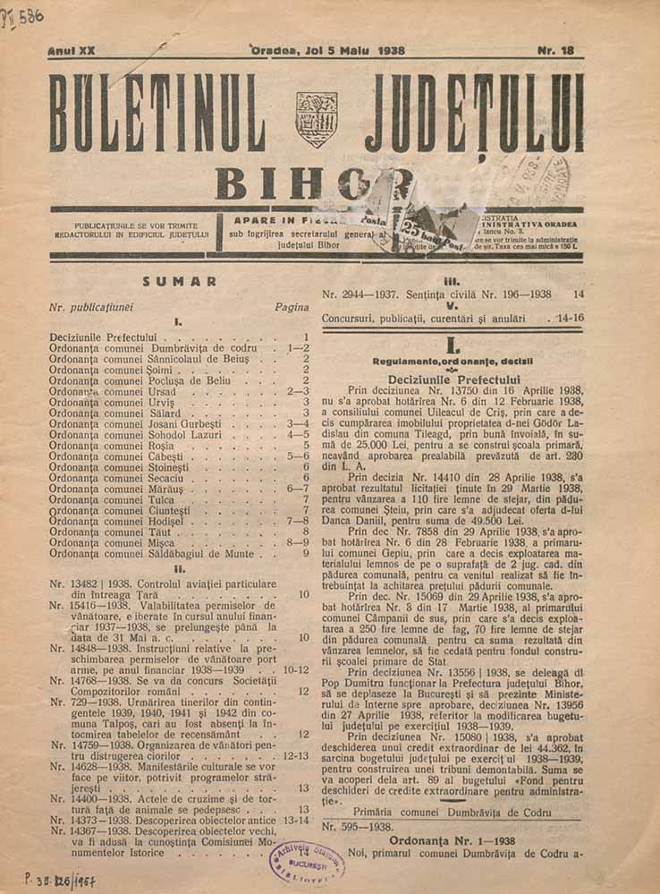 Buletinul Județului Bihor, XX, nr. în TOM: 18, 5 mai 1938, 1938