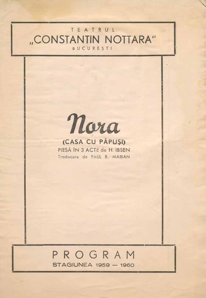 - Descriptori asociați: București, caiet de spectacol, caiet program, Donație Tănase Ecaterina, Dumitru Neleanu, Henrik Ibsen, piesă de teatru, Teatrul Nottara
