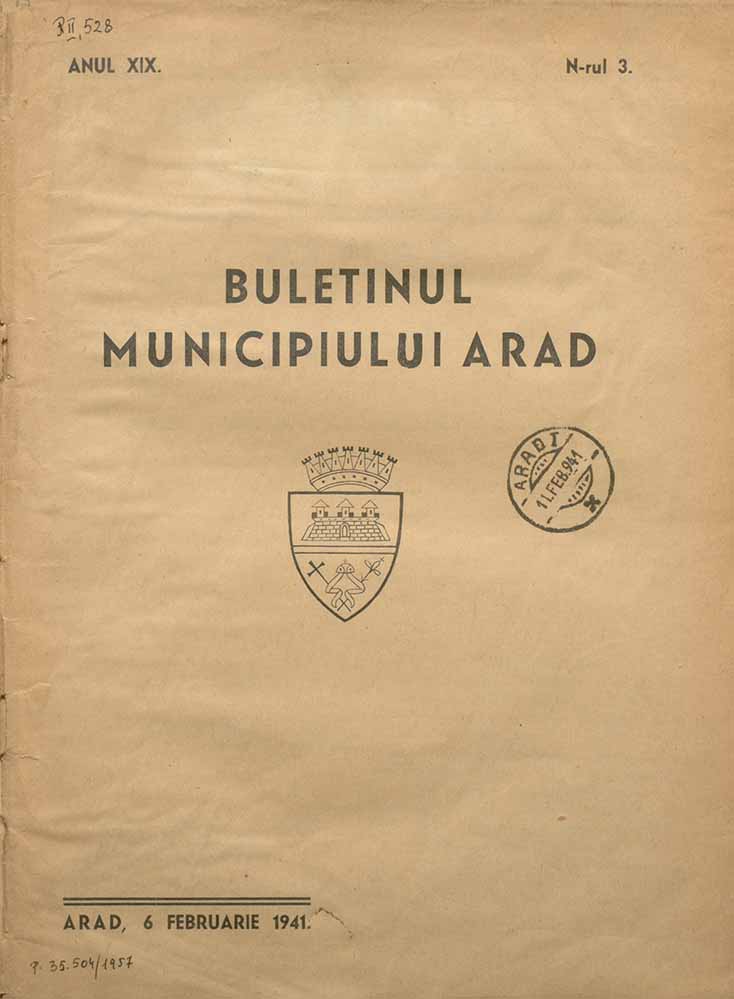 Buletinul Municipiului Arad, XIX, nr. în TOM: 3, 6 februarie, 1941
