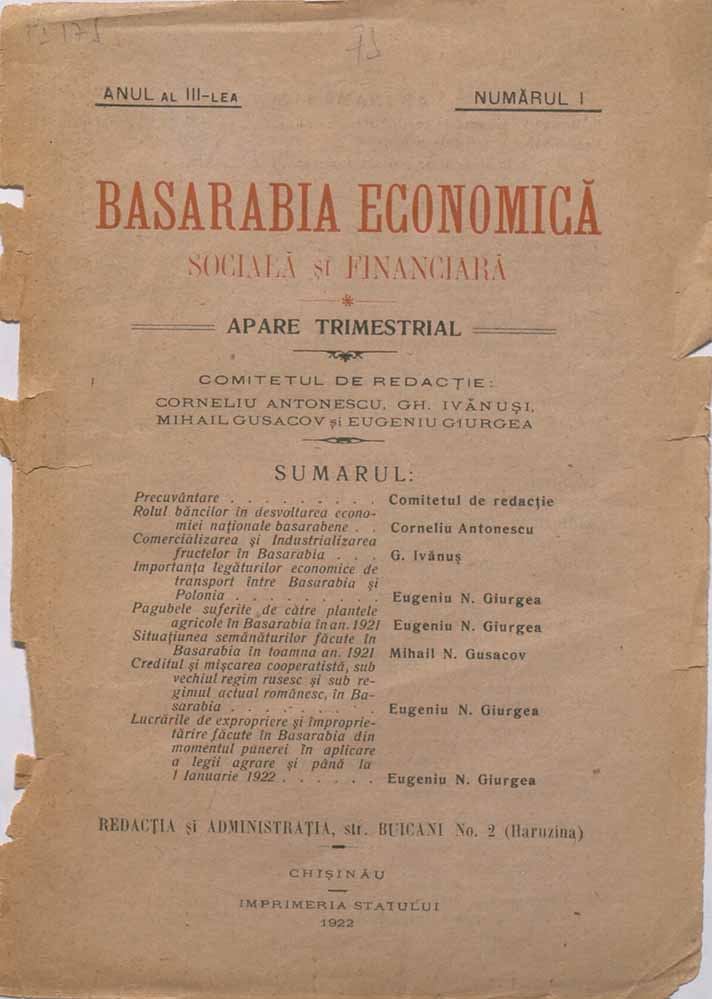 Basarabia Economică, III, nr. în TOM: 1, 1922, Socială și financiară