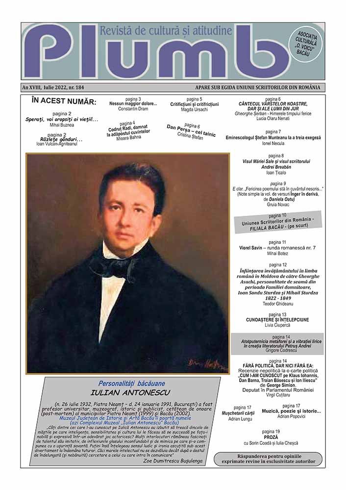 - Publicată de: Asociația Culturală „Octavian Voicu” Bacău , Uniunea Scriitorilor din România