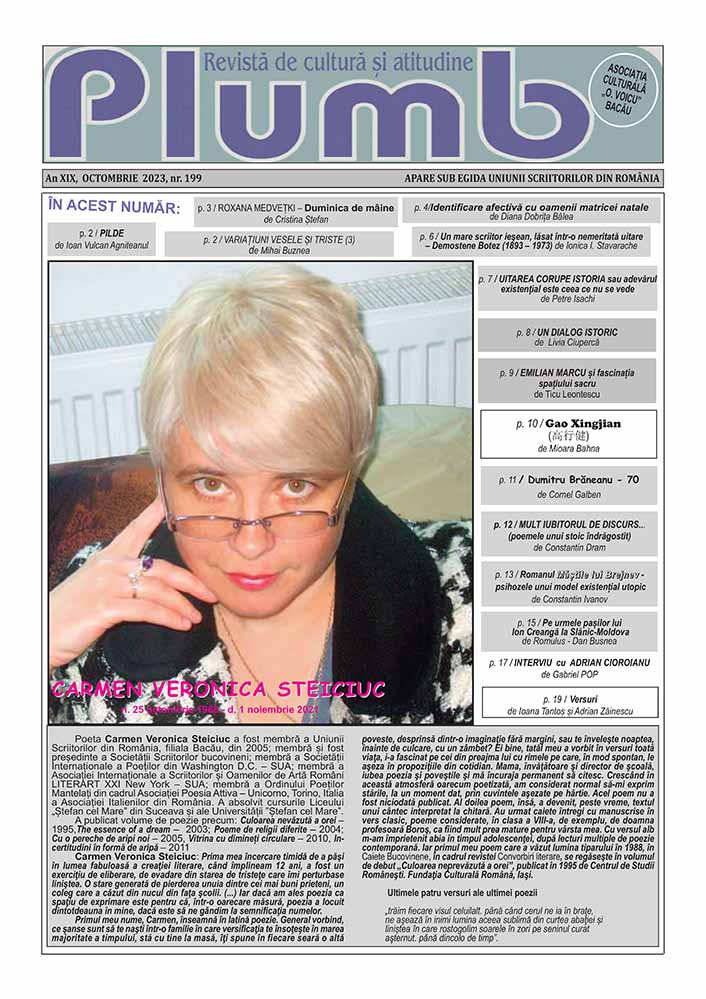 - Descriptori asociați: adevăr, Adrian Cioroianu, Asociația Cultural Octavian Voicu Bacău, Carmen Veronica Steiciuc, critică literară, cronică literară, cultură română, cultură română contemporană, Demostene Botez, dialog istoric, Dumitru Brăneanu, Emilian Marcu, eseistică, Gao Xingjian, Ioan Vulcan-Agniteanul, jurnal, lectură, Literatură română, literatură română contemporană, Măștile lui Brejnev, memorialistică, nuvelă, poeți băcăuani, poeți români, poezie, poveste, proză, scriitori băcăuani, scriitori români, teme literare contemporane, uitare, Uniunea Scriitorilor din România, utopie