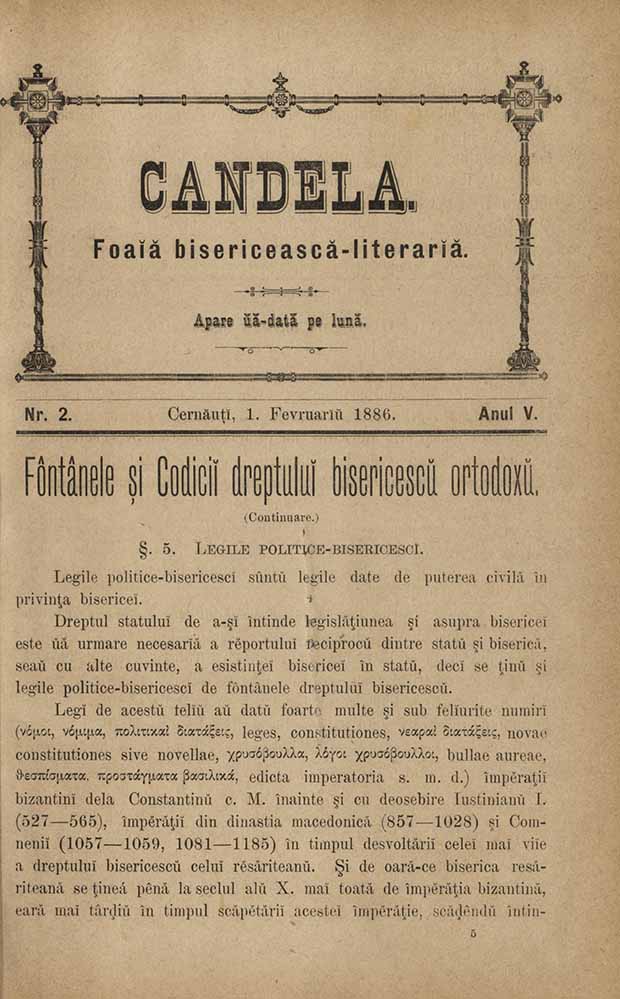 Candela, V, nr. în TOM: 2, februarie, 1886, Foaiă bisericească-literariă