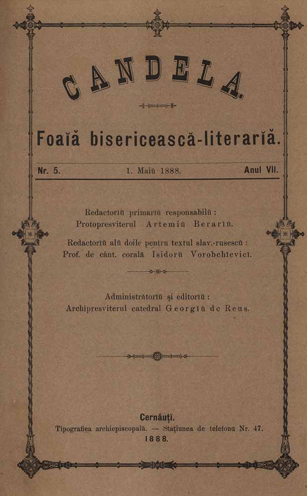 Candela, VII, nr. în TOM: 5, mai, 1888, Foaiă bisericească-literariă