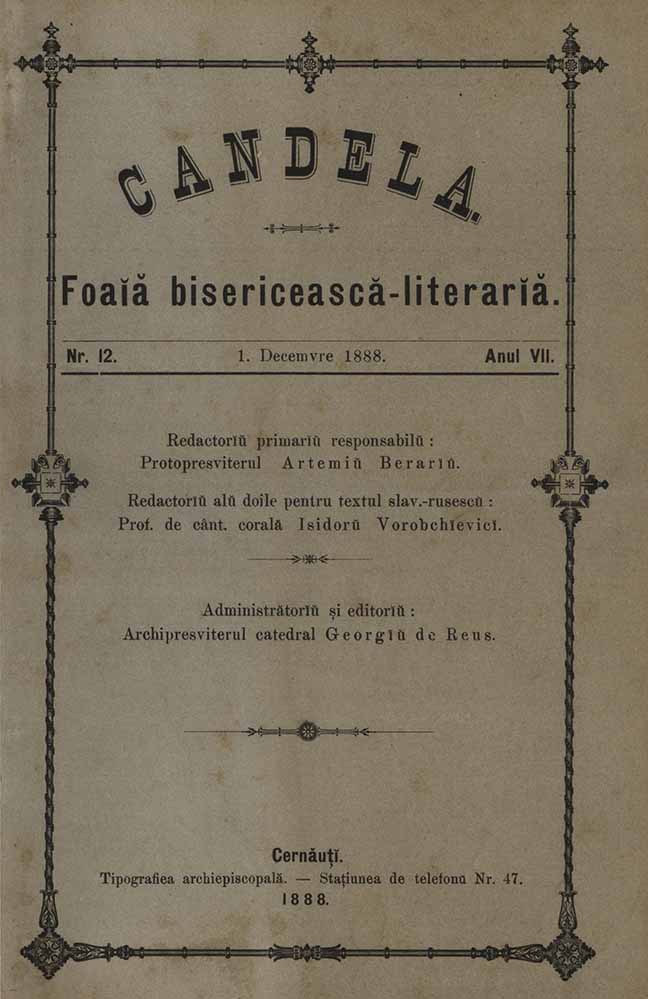 Candela, VII, nr. în TOM: 12, decembrie, 1888, Foaiă bisericească-literariă
