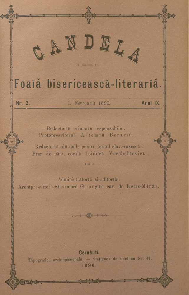 Candela, IX, nr. în TOM: 2, februarie, 1890, Foaiă bisericească-literariă