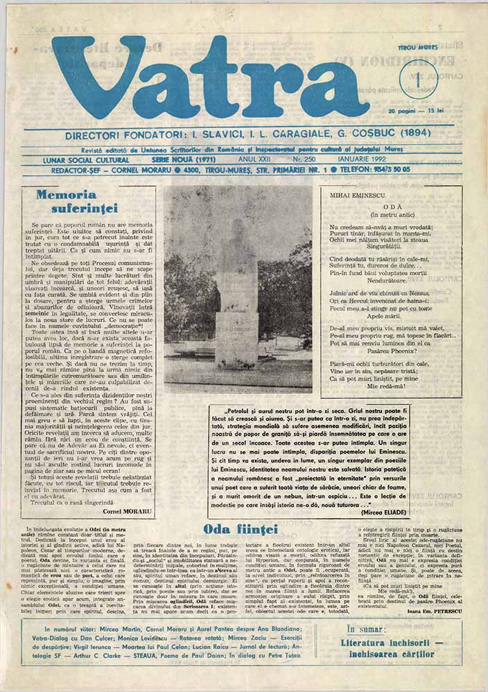 Vatra, 250, nr. în TOM: 1, ianuarie, 1992