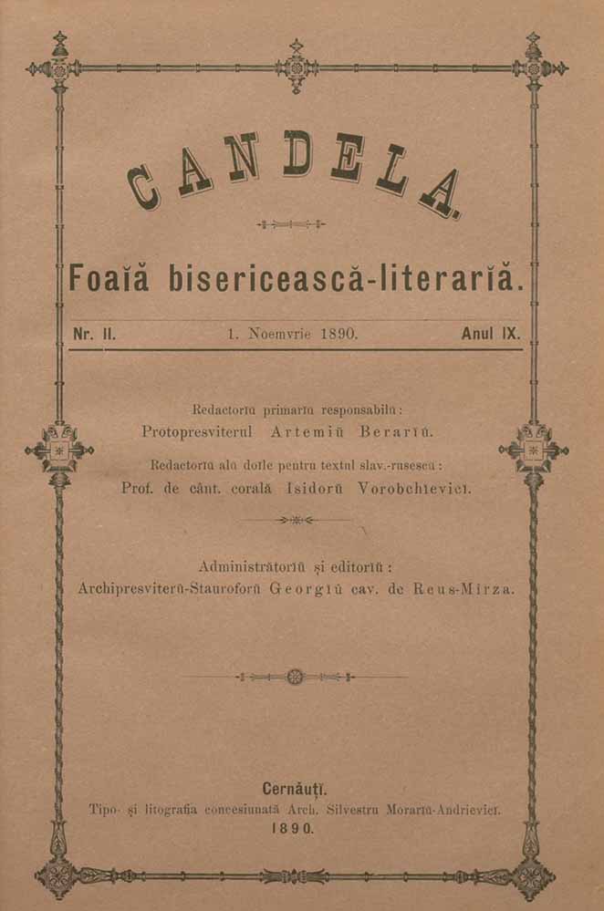 Candela, IX, nr. în TOM: 11, noiembrie, 1890, Foaiă bisericească-literariă