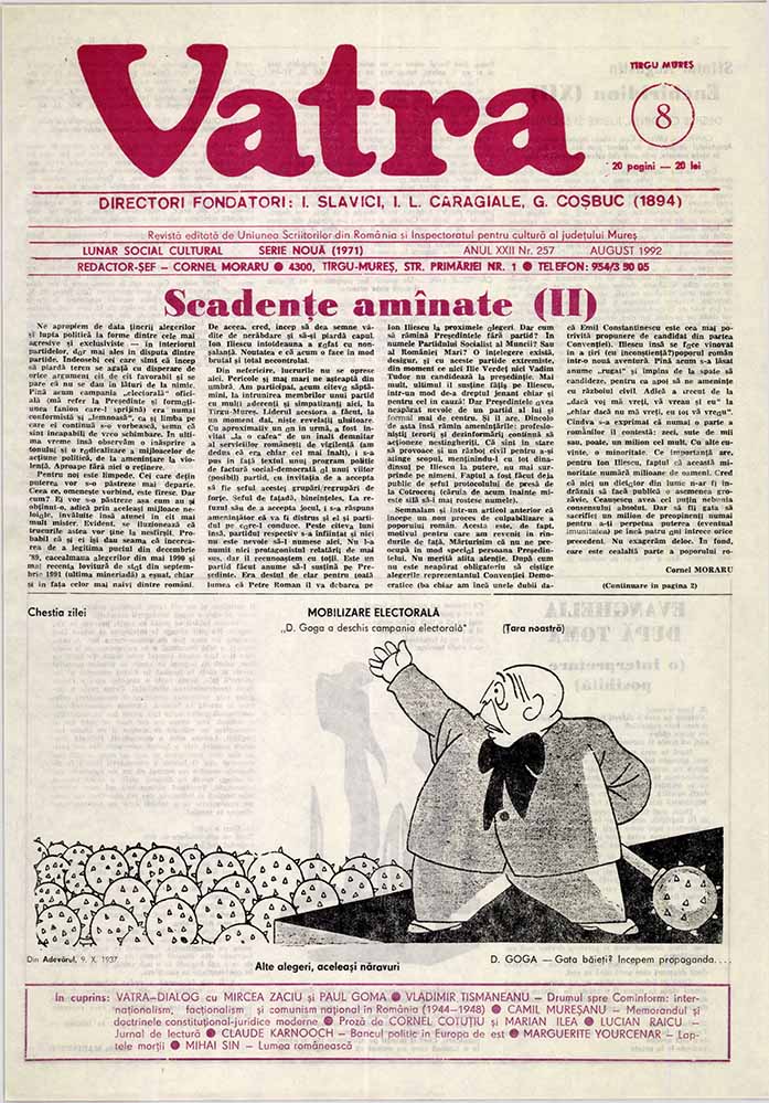 Vatra, 257, nr. în TOM: 8, august, 1992