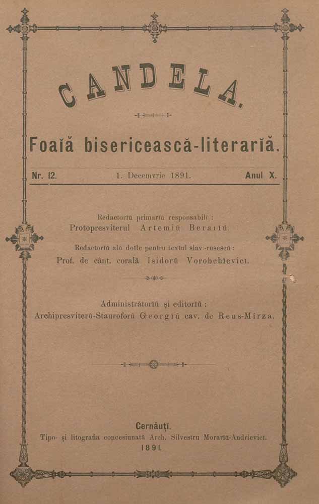 Candela, X, nr. în TOM: 12, decembrie, 1891, Foaiă bisericească-literariă