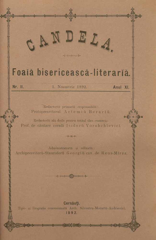 Candela, XI, nr. în TOM: 11, noiembrie, 1892, Foaiă bisericească-literariă